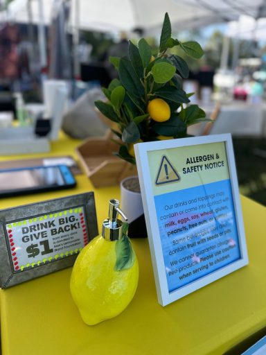 Our launch event was a huge success! Guests enjoyed fresh-squeezed lemonade with boba, fruit, and candy — and every cup helped us give back with a $1 donation to Alex’s Lemonade Stand Foundation.