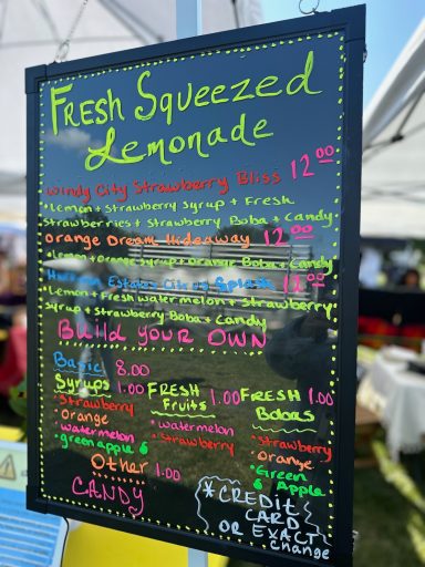 We’ll be serving our fresh-squeezed lemonade beverage bar, featuring refreshing handcrafted drinks perfect for a summer afternoon.